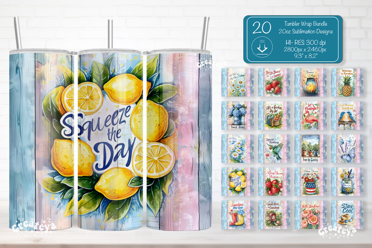 Watercolor Summer Sublimation Designs Garden Design Skinny Tumbler Design Summer Quotes Sublimation Tumbler Wrap Bundle Floral Tumbler Wrap Summer Tumbler Wrap Bundle Watercolor 20oz Skinny Sublimation Lemon Design Tumbler