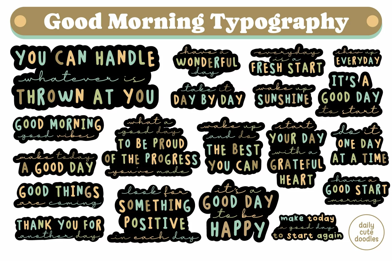 • Good Morning and Good Day Vibes Typography Words for Sublimation and Stickers