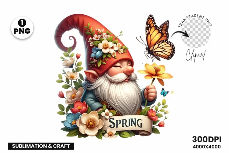 Infuse your creations with Spring Gnome Sublimation Clipart PNG, Spring Sublimation PNG."