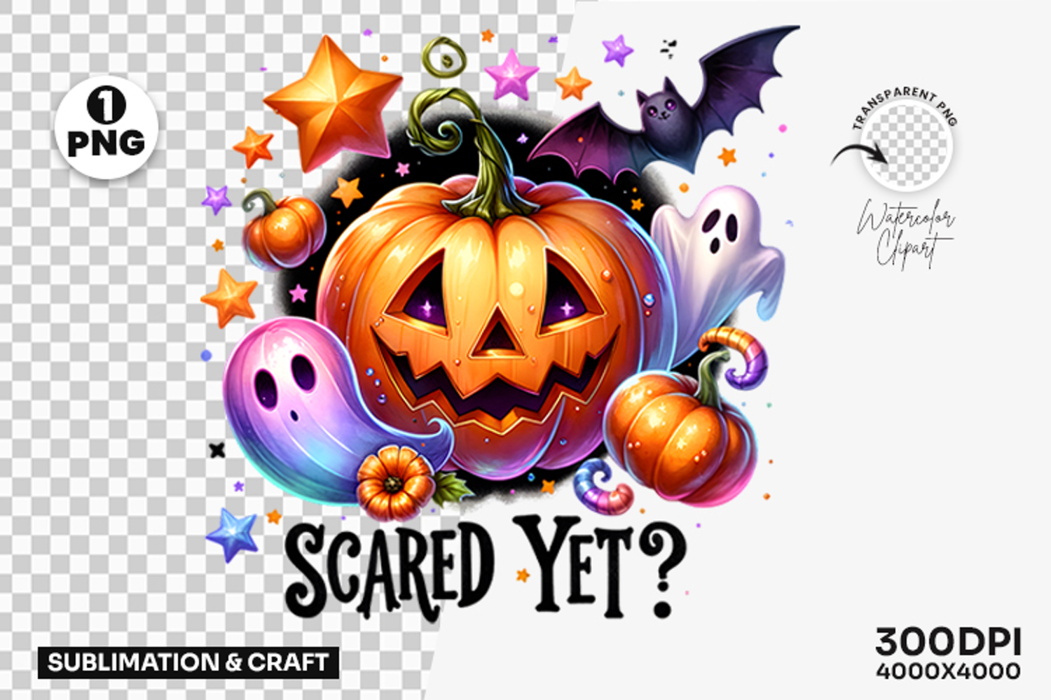 Halloween Scared Yet Pumpkin Ghost Clipart PNG Sublimation example image 1