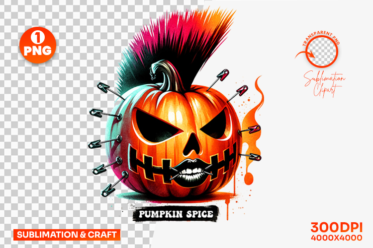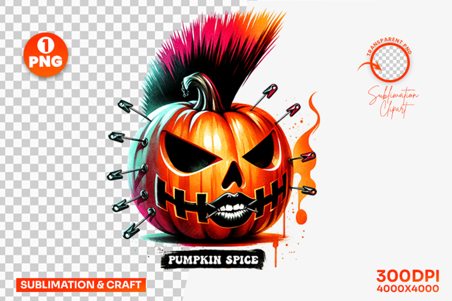 Halloween Pumpkin Spice Creepy Pumpkin Clipart PNG Sublimation Design