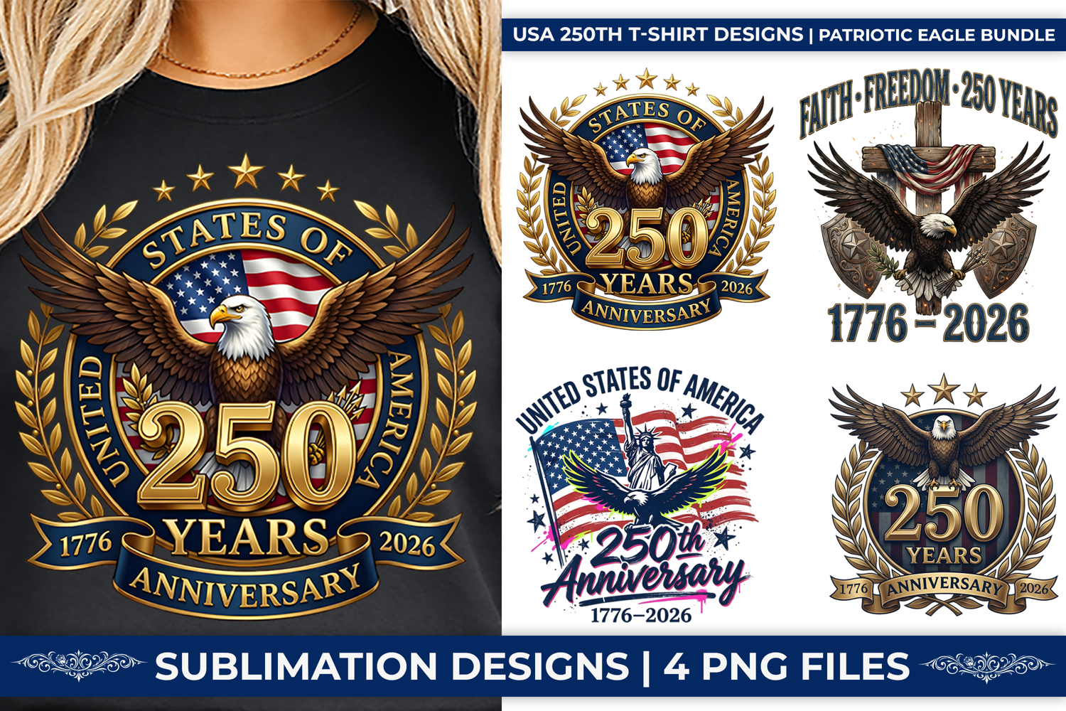 🇺🇸 USA 250th Anniversary Patriotic Eagle T-Shirt Design Bundle – 4 PNG Files