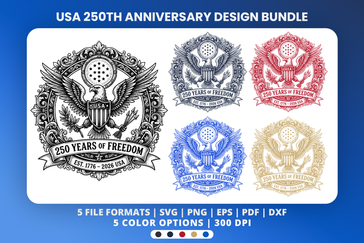 Freedom 250th Anniversary 1776-2026 Eagle Sublimation Design