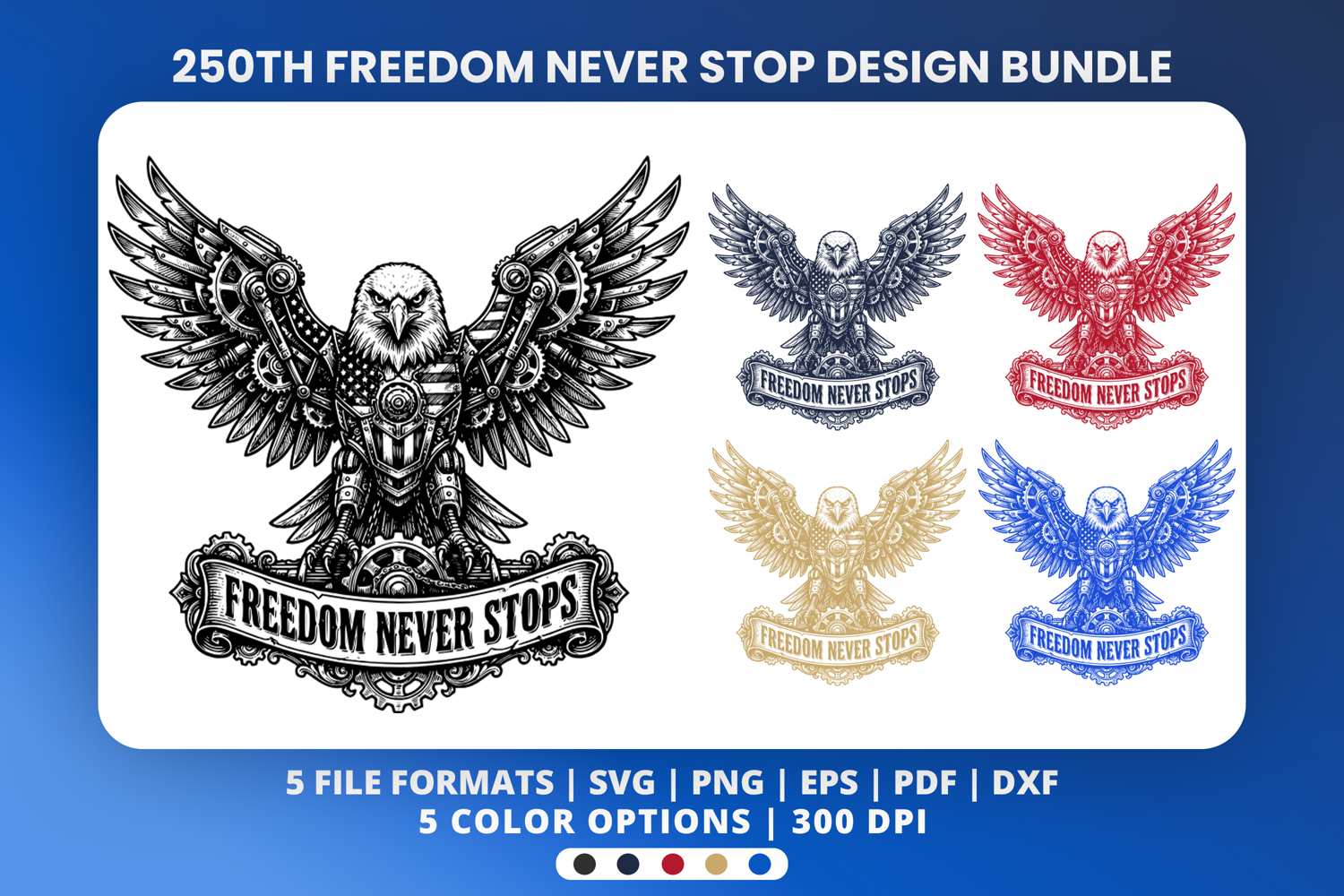 Freedom Never Stops 250th Anniversary Patriotic Eagle Design
