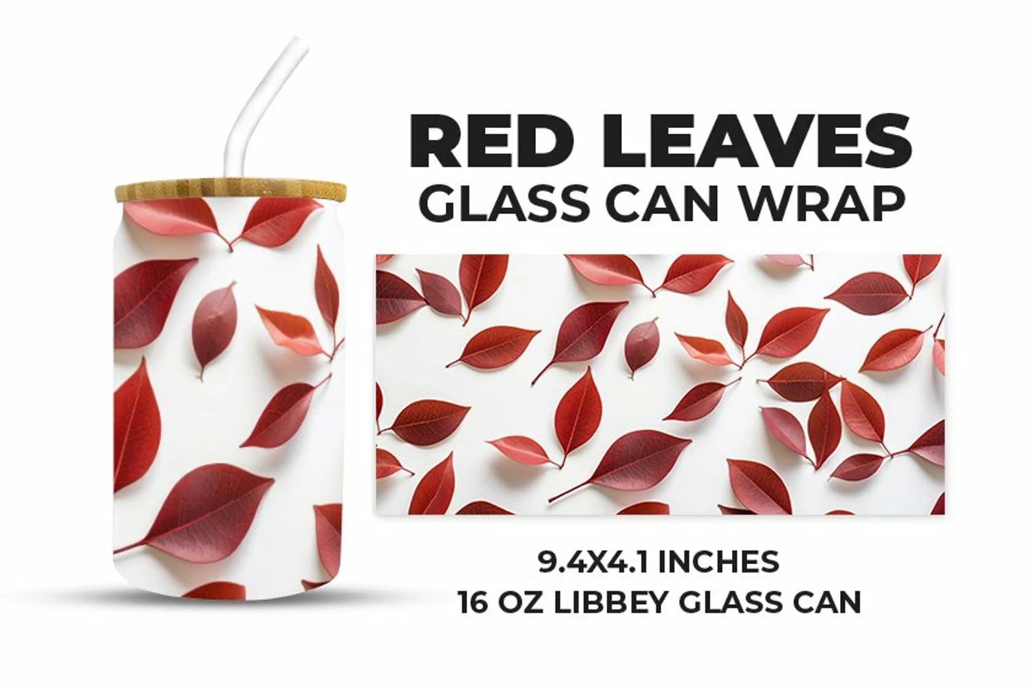 Sublimation Sublimation Design Tumbler Wrap Glass Can Wrap Glass Can Sublimation Libbey Can Glass Wrap Libbey Glass Can Wrap For Libbey Can Glass 16 Oz Wrap For Libbey Glass Can Red Leaves Glass Can Wrap