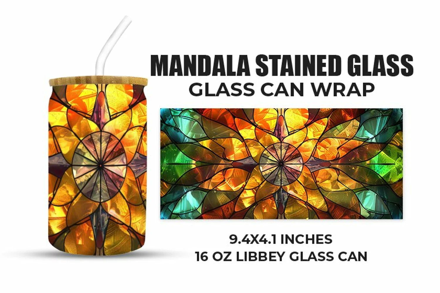 Sublimation Sublimation Design Tumbler Wrap Glass Can Wrap Glass Can Sublimation Libbey Can Glass Wrap Libbey Glass Can Wrap For Libbey Can Glass 16 Oz Wrap For Libbey Glass Can Mandala Stained Glass Glass Can Wrap