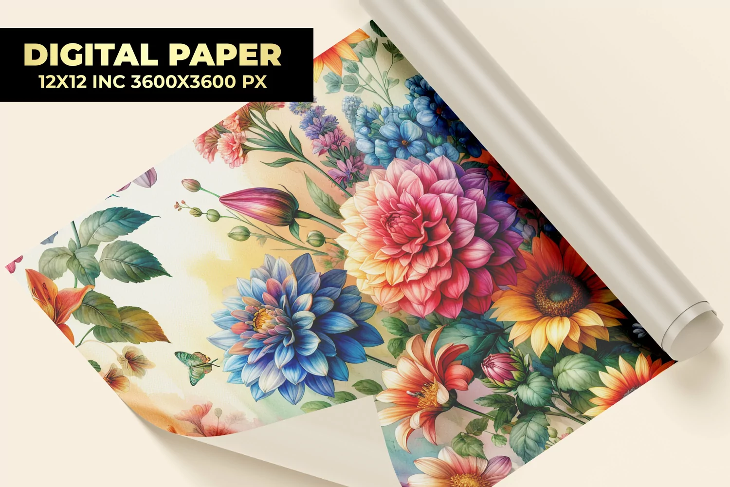 3D Watercolor Floral Digital Paper