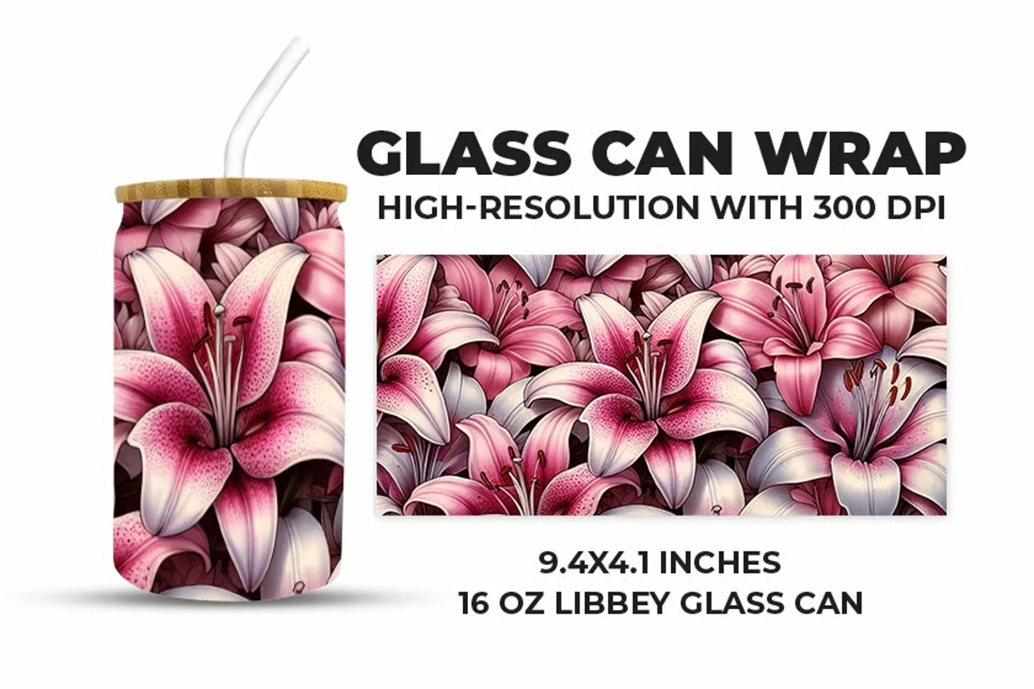 Similar Design Products to Pink Floral Glass Can Wrap