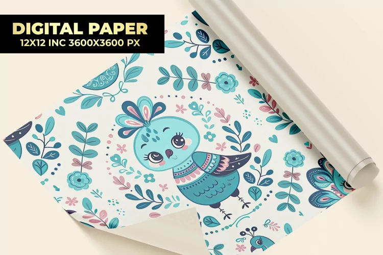 Cute Peacock Digital Paper