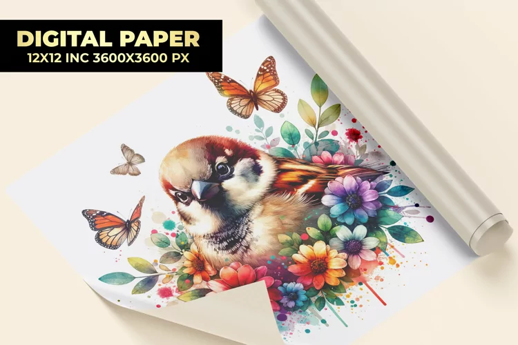 Similar Design Products to Sparrow With Floral Watercolor Digital Paper
