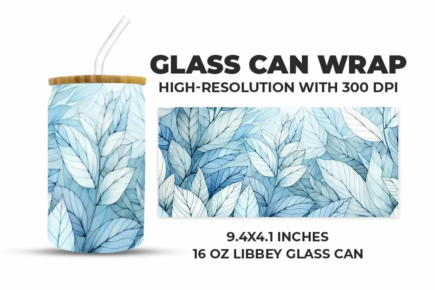Similar Design Products to Watercolor Blue Leaves Glass Can Wrap