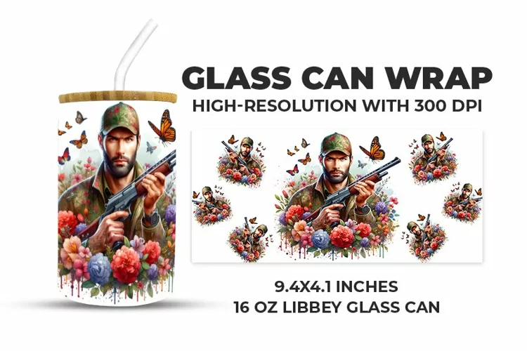 Png Sublimation Sublimation Design Tumbler Wrap Glass Can Sublimation Libbey Can Glass Wrap Libbey Glass Can Wrap For Libbey Can Glass 16 Oz Wrap For Libbey Glass Can Hunter Man With Flowers Glass Can Wrap