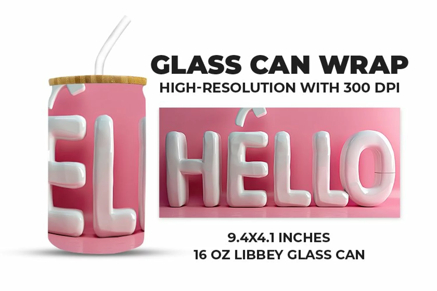 Png Sublimation Sublimation Design Tumbler Wrap Glass Can Sublimation Libbey Can Glass Wrap Libbey Glass Can Wrap For Libbey Can Glass 16 Oz Wrap For Libbey Glass Can Hello 3d Text Glass Can Wrap