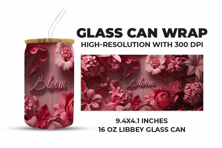 Floral With Bloom Text Glass Can Wrap