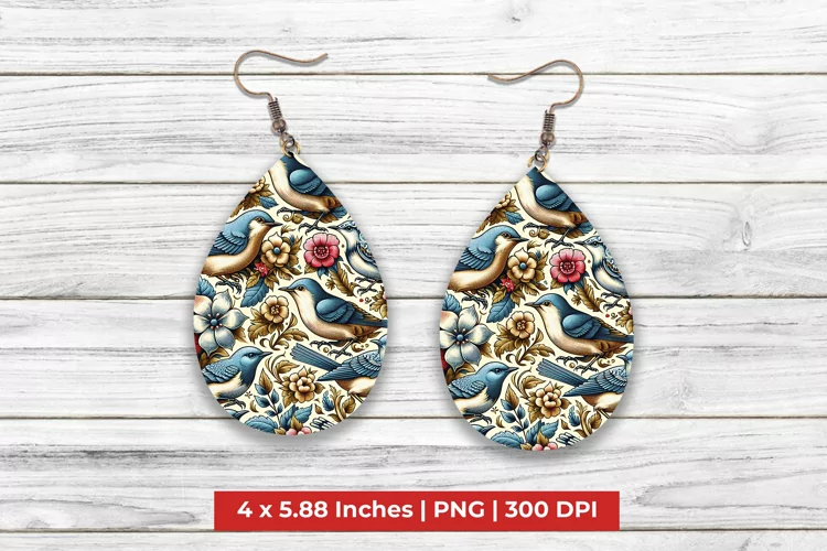Print Ready Sublimation Sublimation Earrings Teardrop Earrings Templates Teardrop Earrings Sublimation Teardrop Earrings Png Earrings Sublimation Design Embossed Birds With Floral Teardrop Earrings