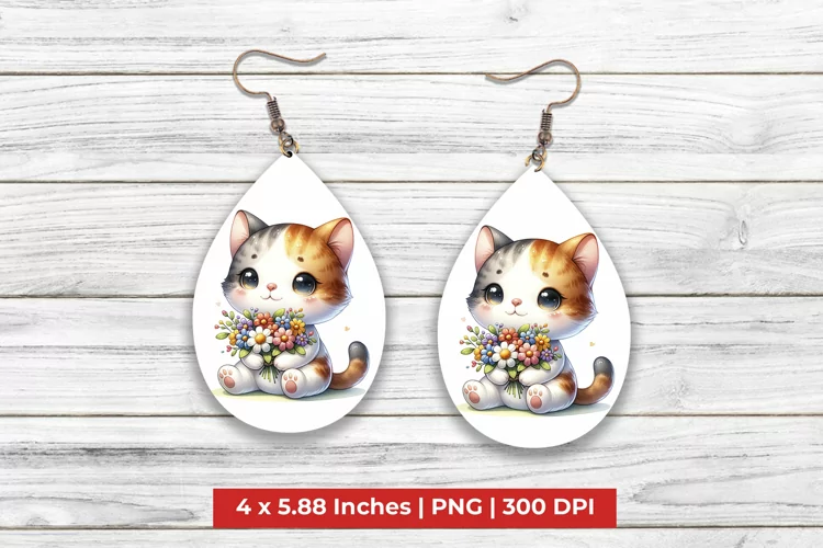 Print Ready Sublimation Sublimation Earrings Teardrop Earrings Templates Teardrop Earrings Sublimation Teardrop Earrings Png Earrings Sublimation Design Cat With Floral Teardrop Earrings