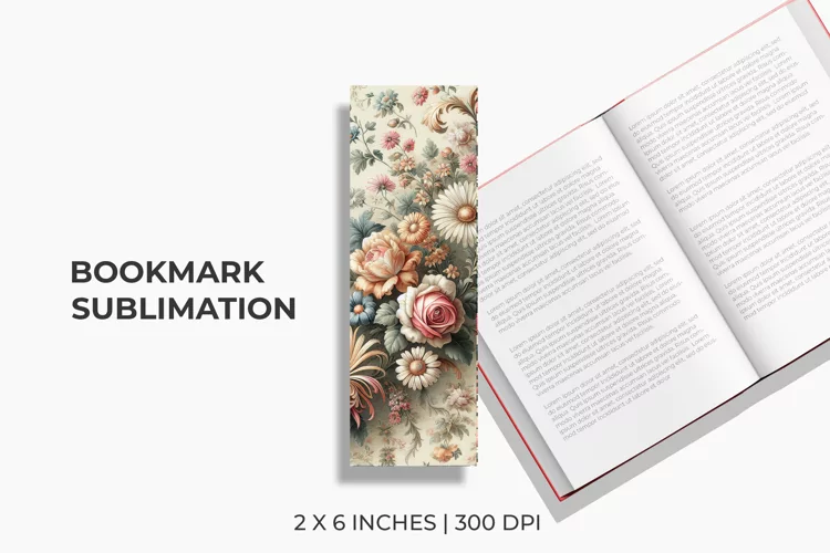 Vintage Floral Bookmark Sublimation example image 1