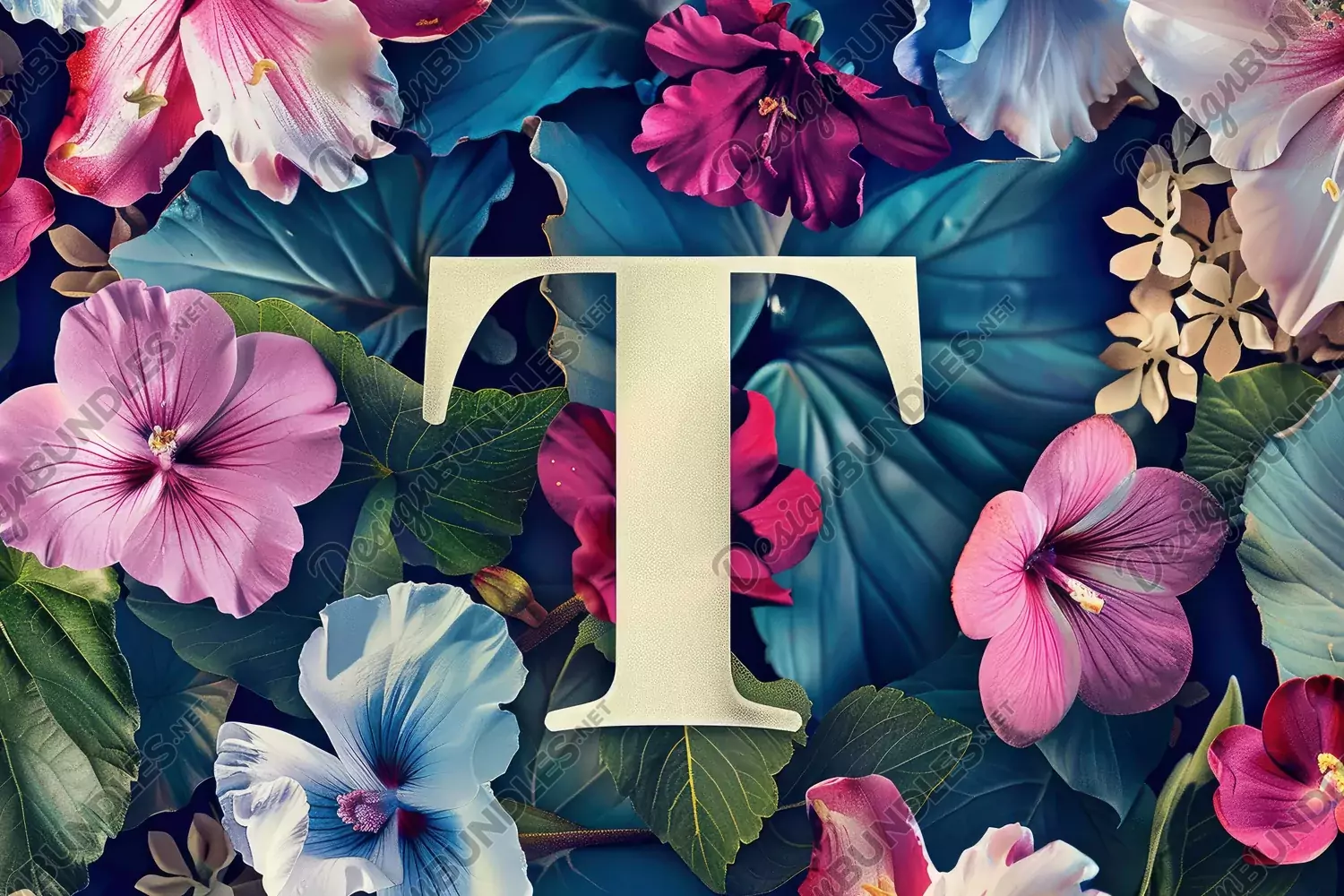 Similar Design Products to Letter T with Flowers Background Wallpaper