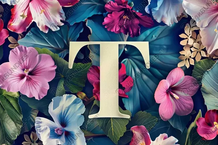 Letter T with Flowers Background Wallpaper