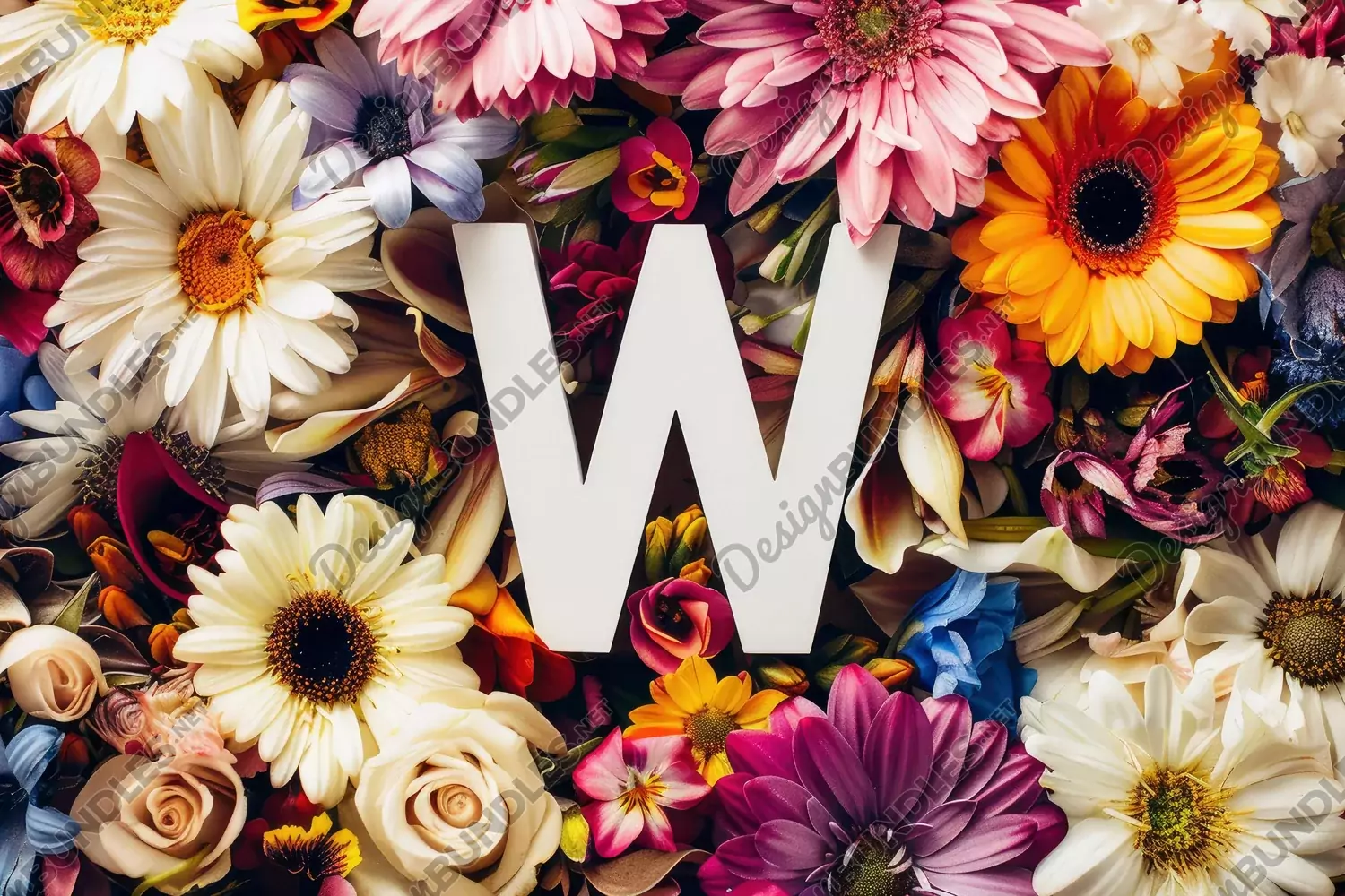 Letter W with Flowers Background Wallpaper example image 1