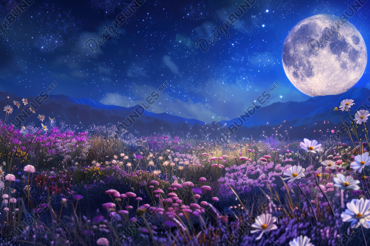 Moonlight with Flowers Background Wallpaper example image 1