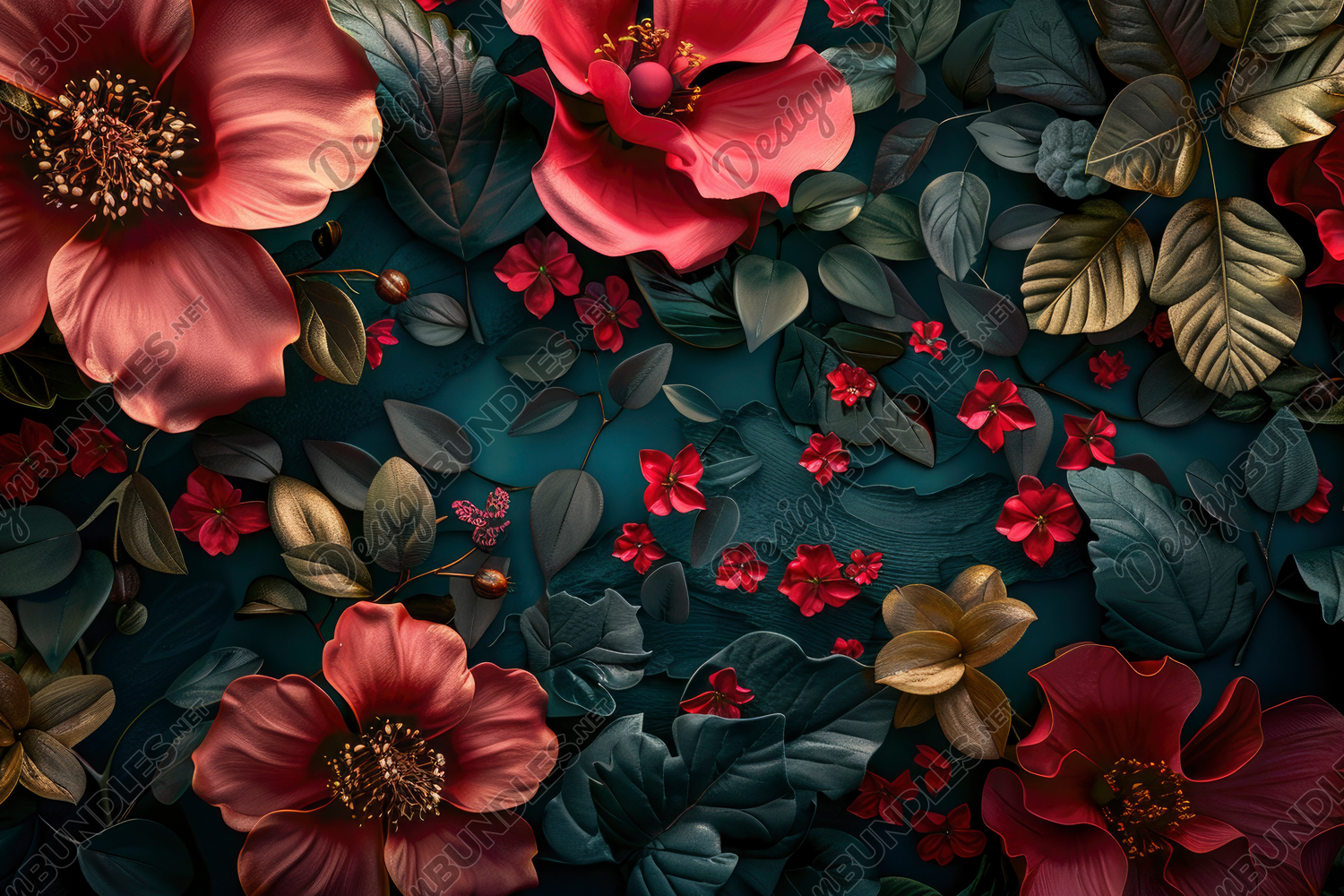 Similar Design Products to Flowers and Leaves Background Wallpaper