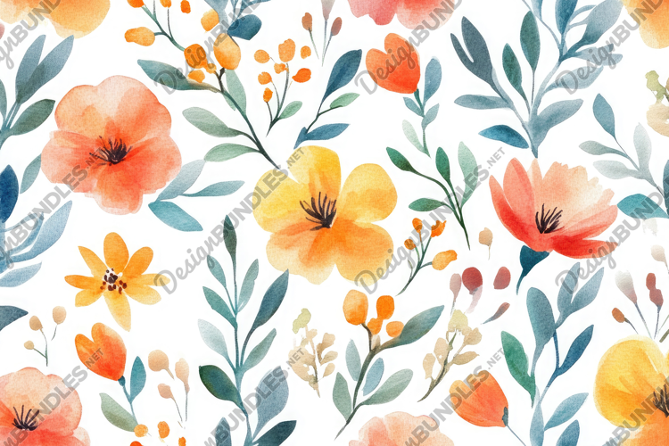 Watercolor Flowers and Leaves Background Wallpaper example image 1
