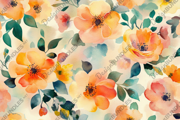 Watercolor Orange Flowers Background Wallpaper example image 1