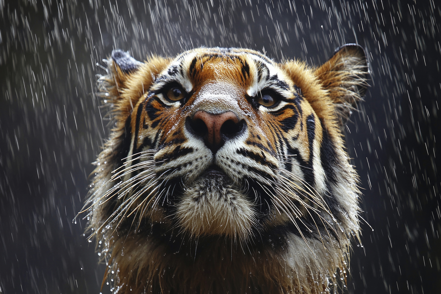 Tiger with Dark Rainy Background Wallpaper example image 1