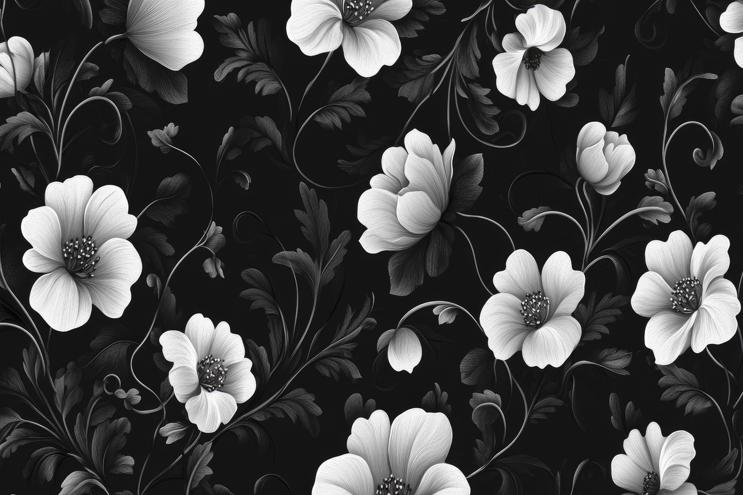 Similar Design Products to Black and White Flowers Background Wallpaper