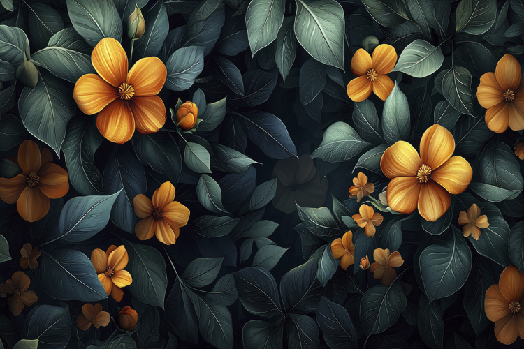 Similar Design Products to Orange Flowers and Leaves Background Wallpaper
