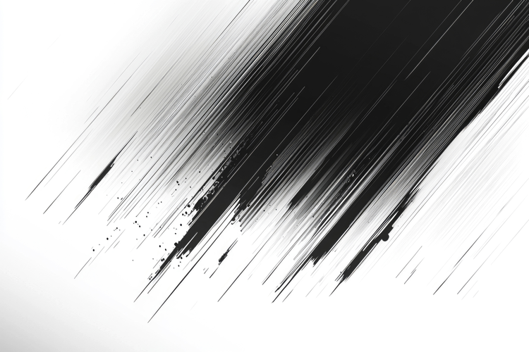 Abstract Black Ink Splatter and Lines on White Background