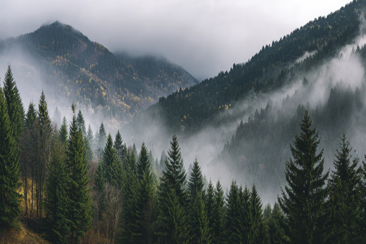 Similar Design Products to Foggy Mountains and Forest Background Wallpaper