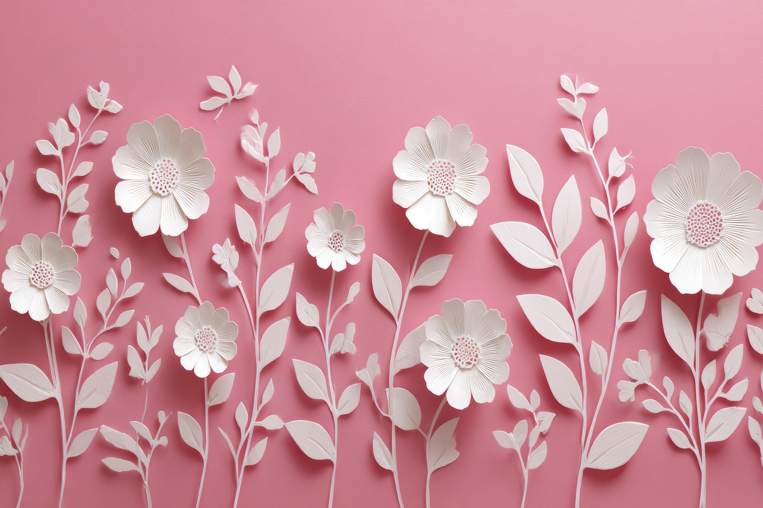 Similar Design Products to White Paper Flowers with Pink Background Wallpaper