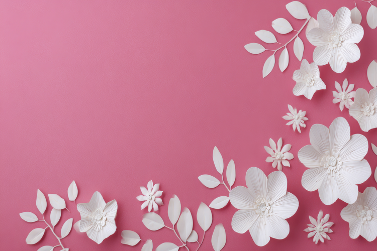 Paper Flowers and Leaves on a Pink Background Wallpaper