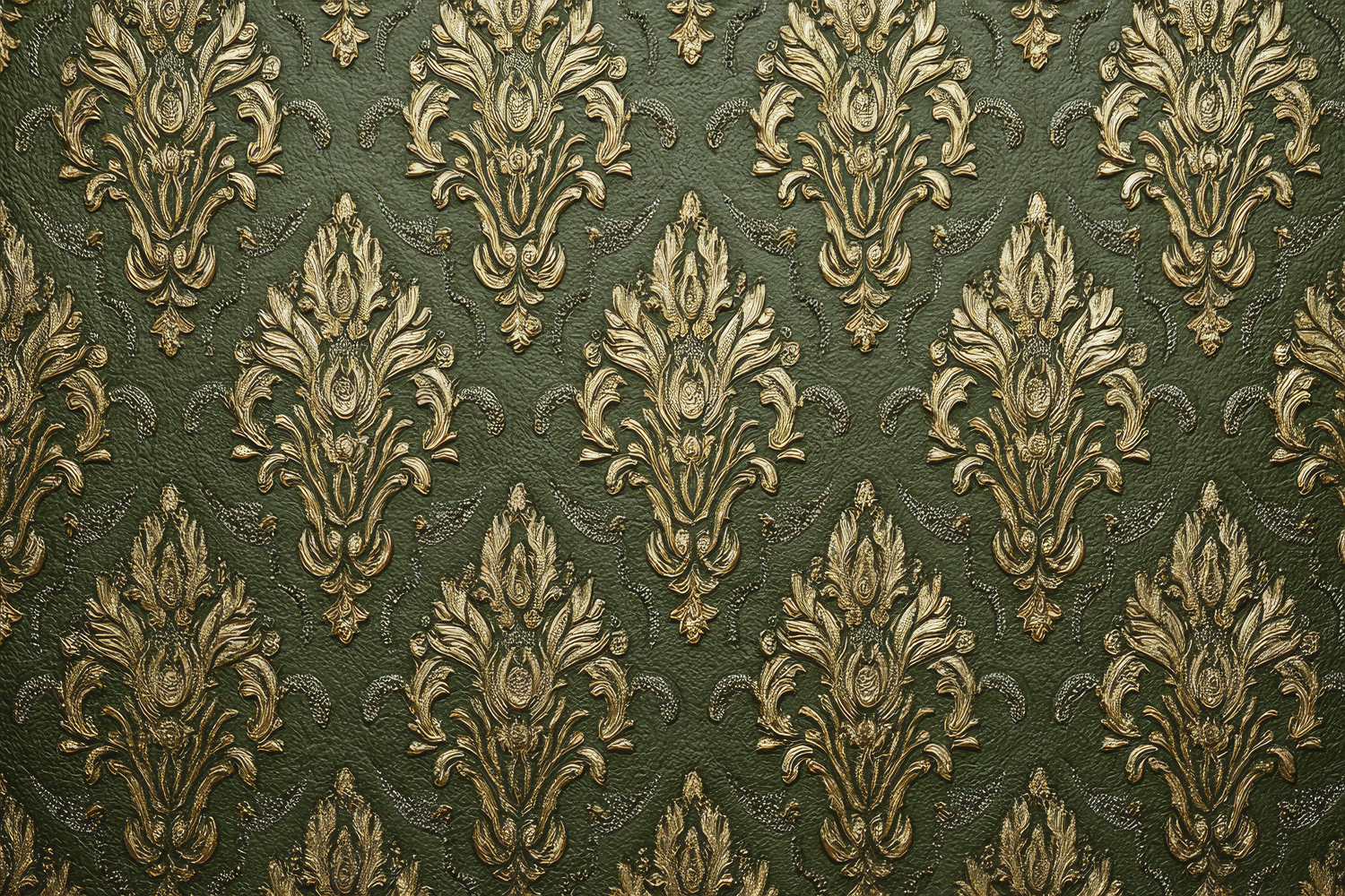 Gold and Green Damask Patterned Background Wallpaper example image 1