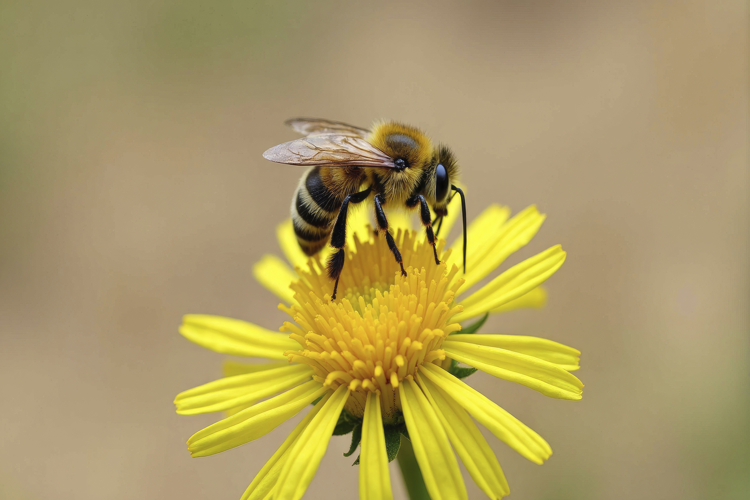 Western Honey Bee on a Yellow Flower Background Wallpaper example image 1
