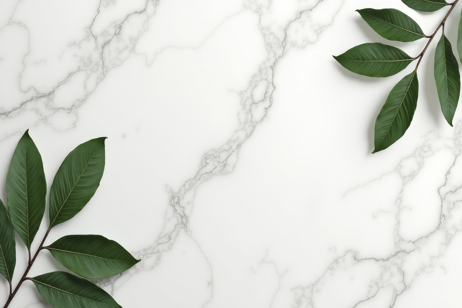 Green Leaves with White Marble Texture Background Wallpaper example image 1