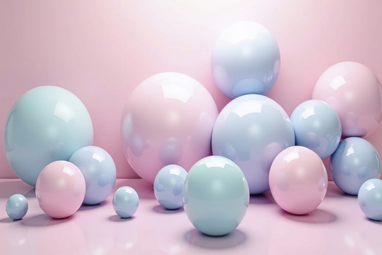 Glossy Spheres in Pastel Pink and Blue Colors Background