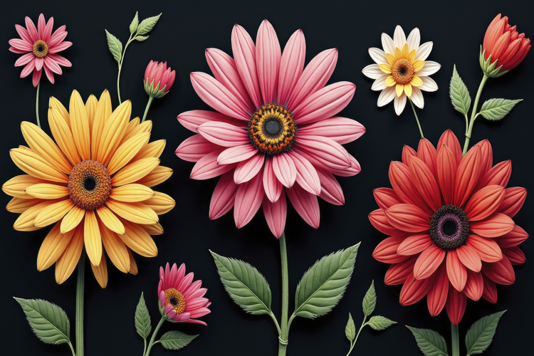 Texture Craft Art Decoration Printable Photo Jpg Images Sublimation Gerbera Daisies Against A Dark