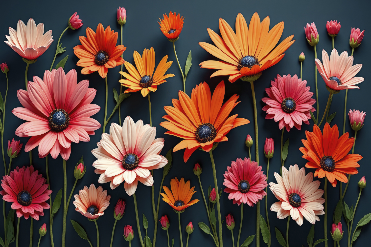 Colorful Floral Arrangement of Daisy-like Flowers Background Wallpaper
