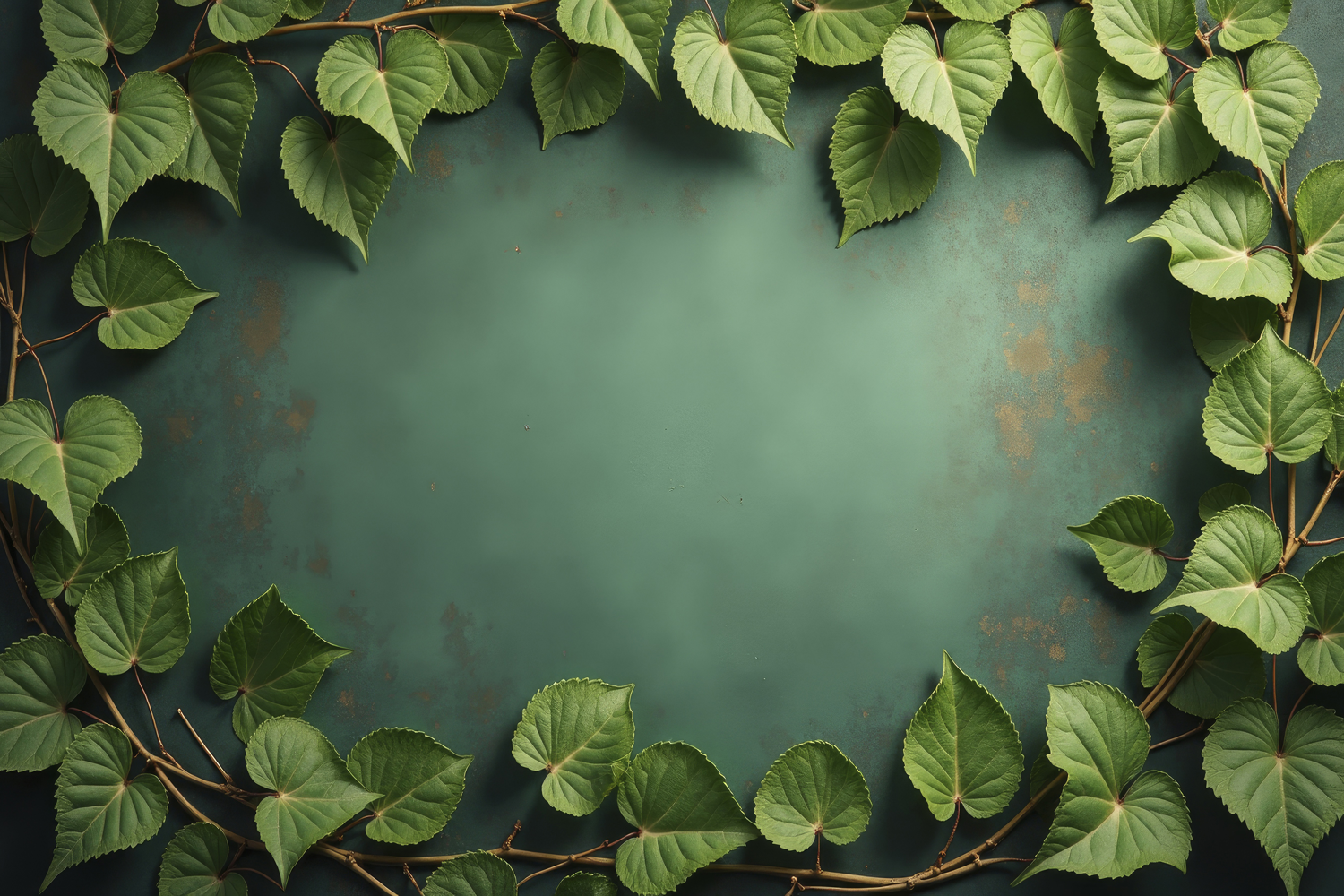 Leaves Framing a Dark Green Background Wallpaper example image 1