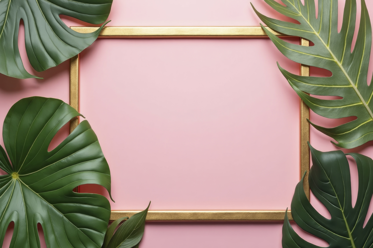Texture Craft Art Decoration Printable Photo Jpg Images Sublimation Green Monstera Leaves On A Pink