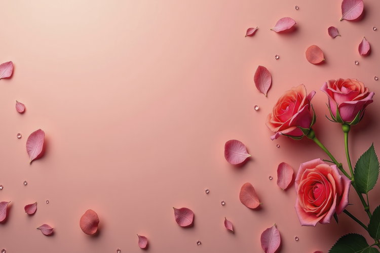 Pink Roses and Petals on a Soft Pink Background Wallpaper