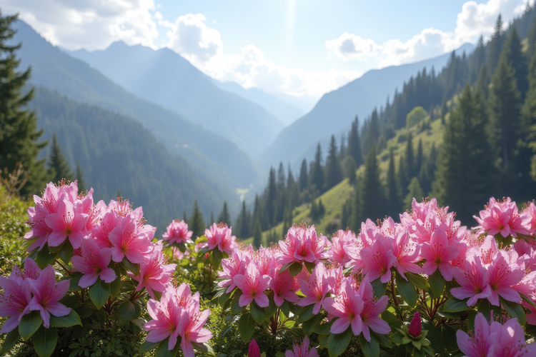 Blooming Pink Rhododendron Flowers Background Wallpaper