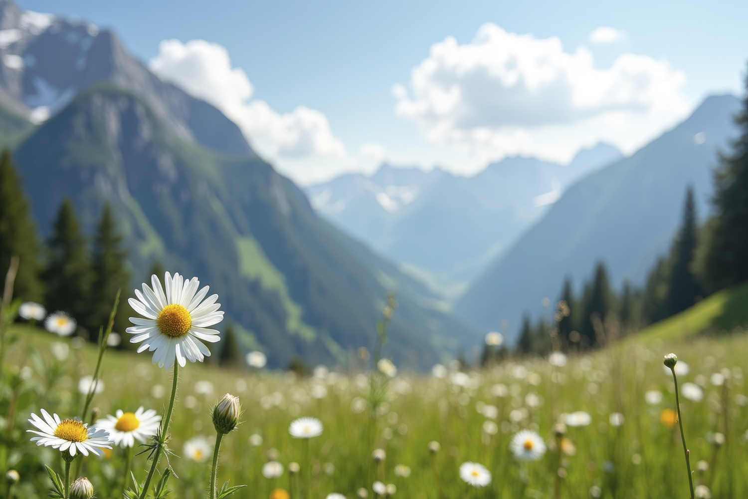 Flowers and Mountains Background Wallpaper