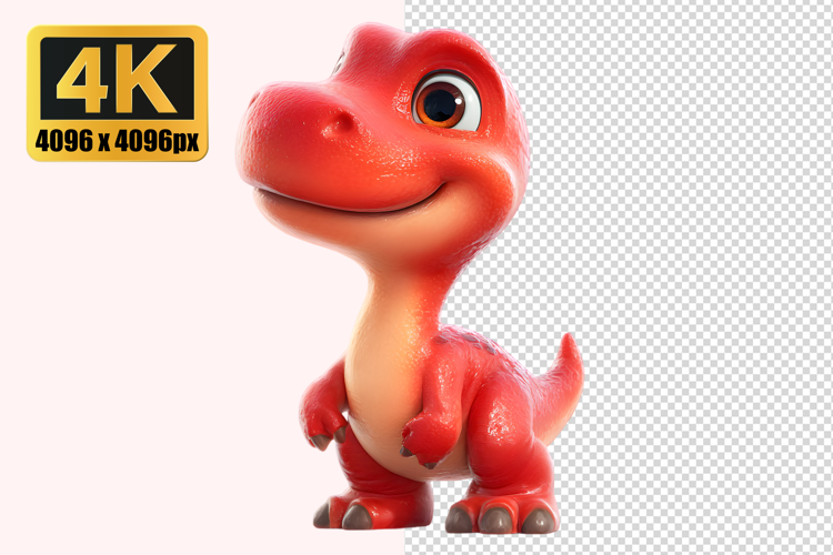 Cartoonish Red Baby Dinosaur Transparent PNG example image 1
