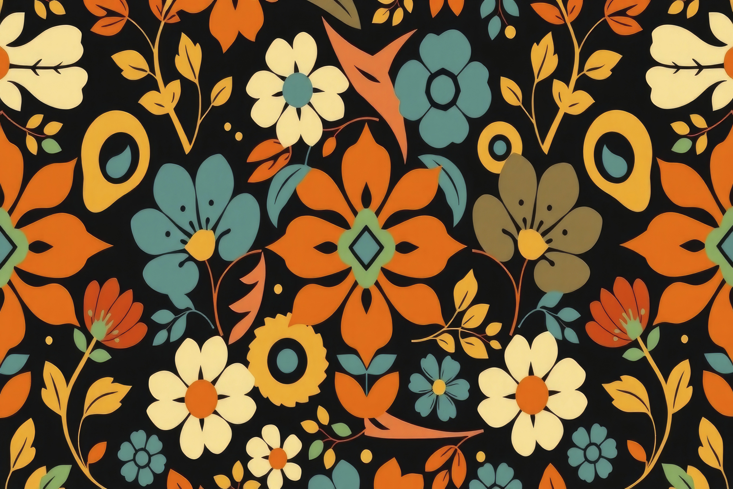 Floral Pattern on a Black Background Wallpaper
