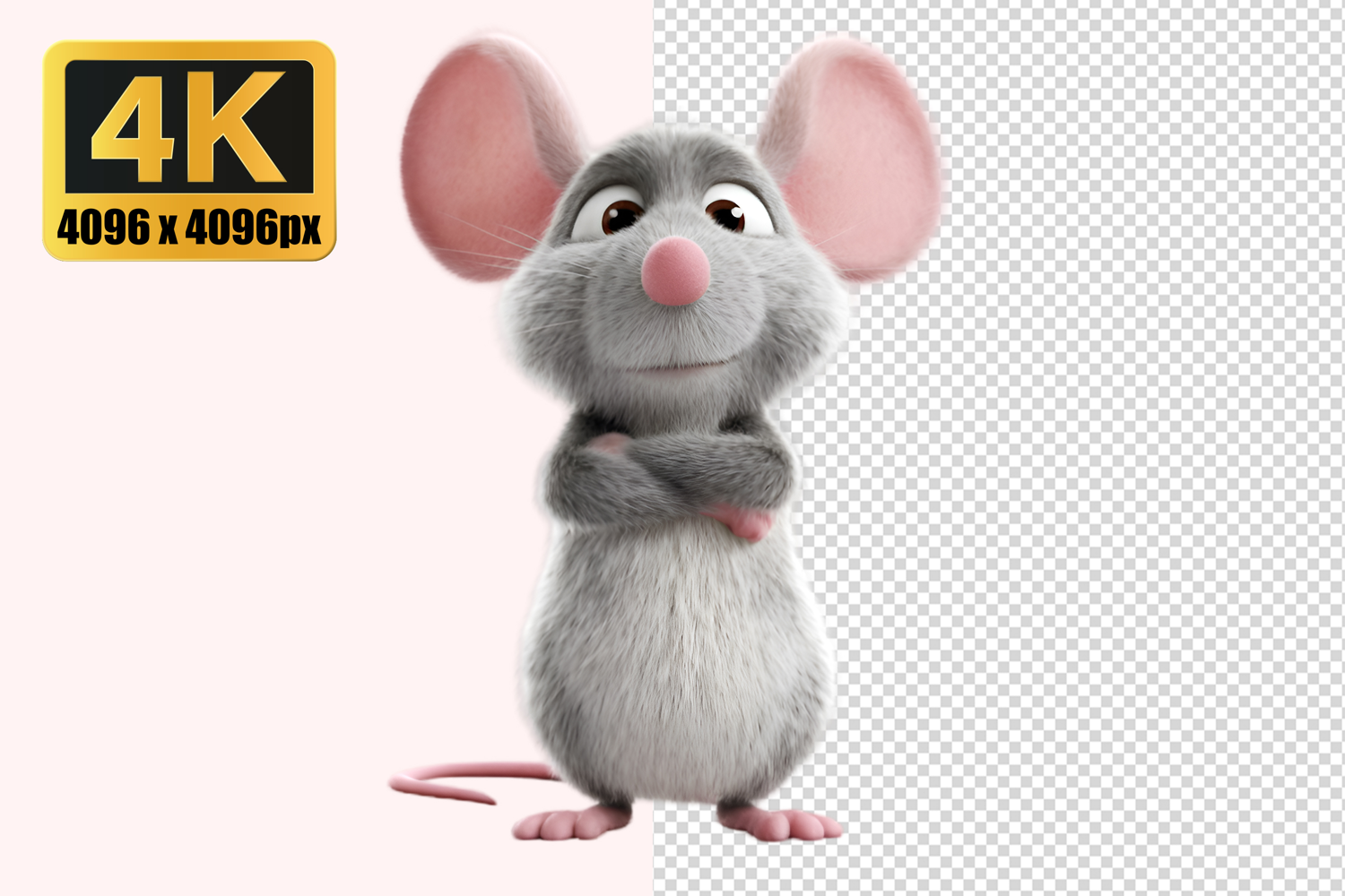Craft Clipart Png Transparent Png Transparent High Resolution Print Ready Sublimation 4k High Quality Fluffy Grey Mouse With Large Pink Ears