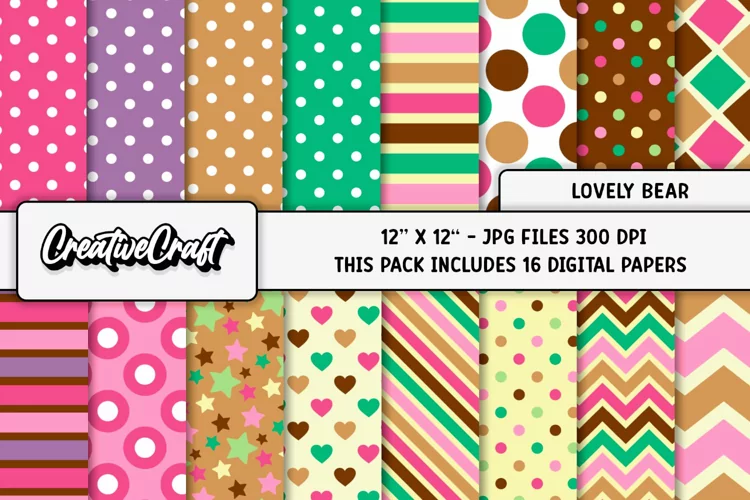 This cute Lovely Bear digital papers set is perfect for all your crafts and projects.